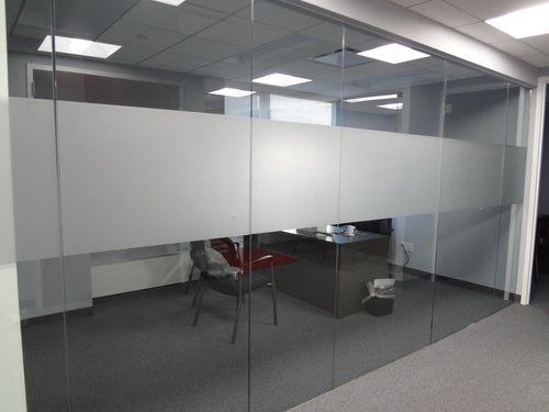 Our window frosting can be a full privacy block-out covering, a band across, specialty cut patterns and designs or partial block-out. We utilize a very high grade frosted film / etch vinyl that adheres to any clear glass surface and provides a sandblasted or frosted/etched look.
